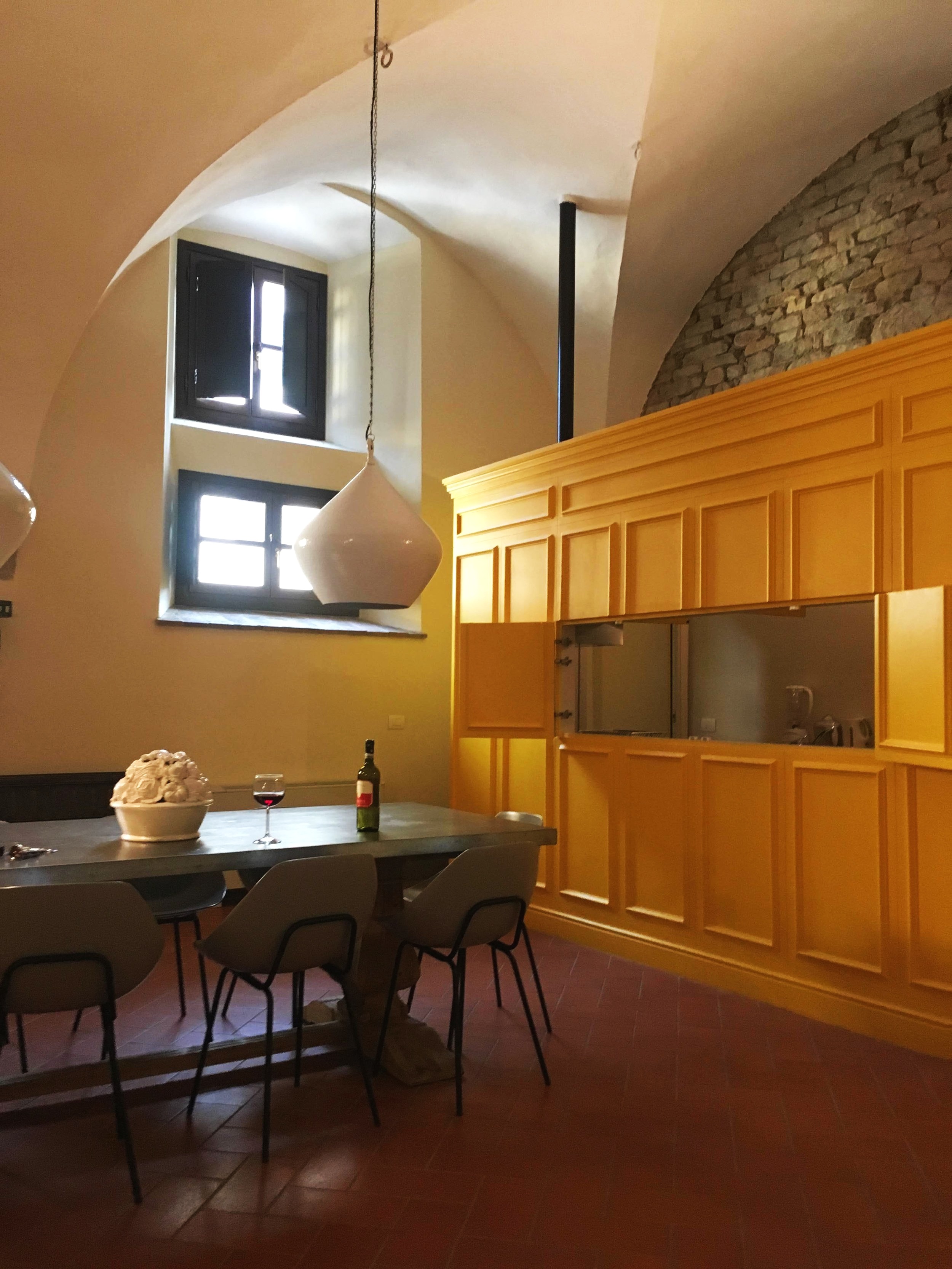 We finally found a cab and arrived at Villa Medicea di Lilliano Wine Estate. Luckily our friends were outside because we hadn’t even had the chance to get the proper currency to pay the taxi yet. We got checked into our gorgeous villas. I could have stayed there for a week. The bathrooms were luxurious and the kitchen was so unique. There was a large table for gathering and a galley kitchen hidden behind bright yellow cabinets. I have never seen a kitchen design like it.