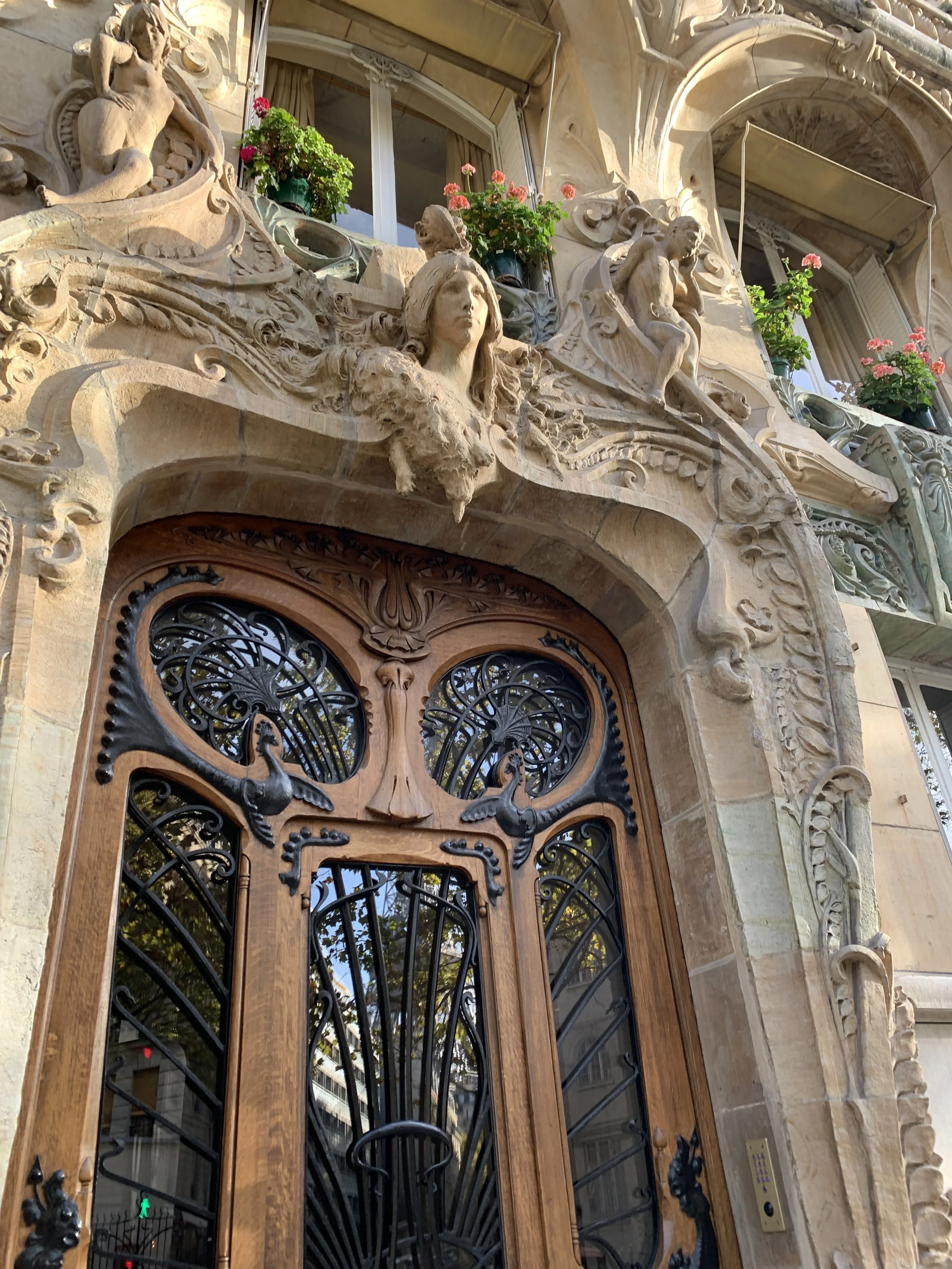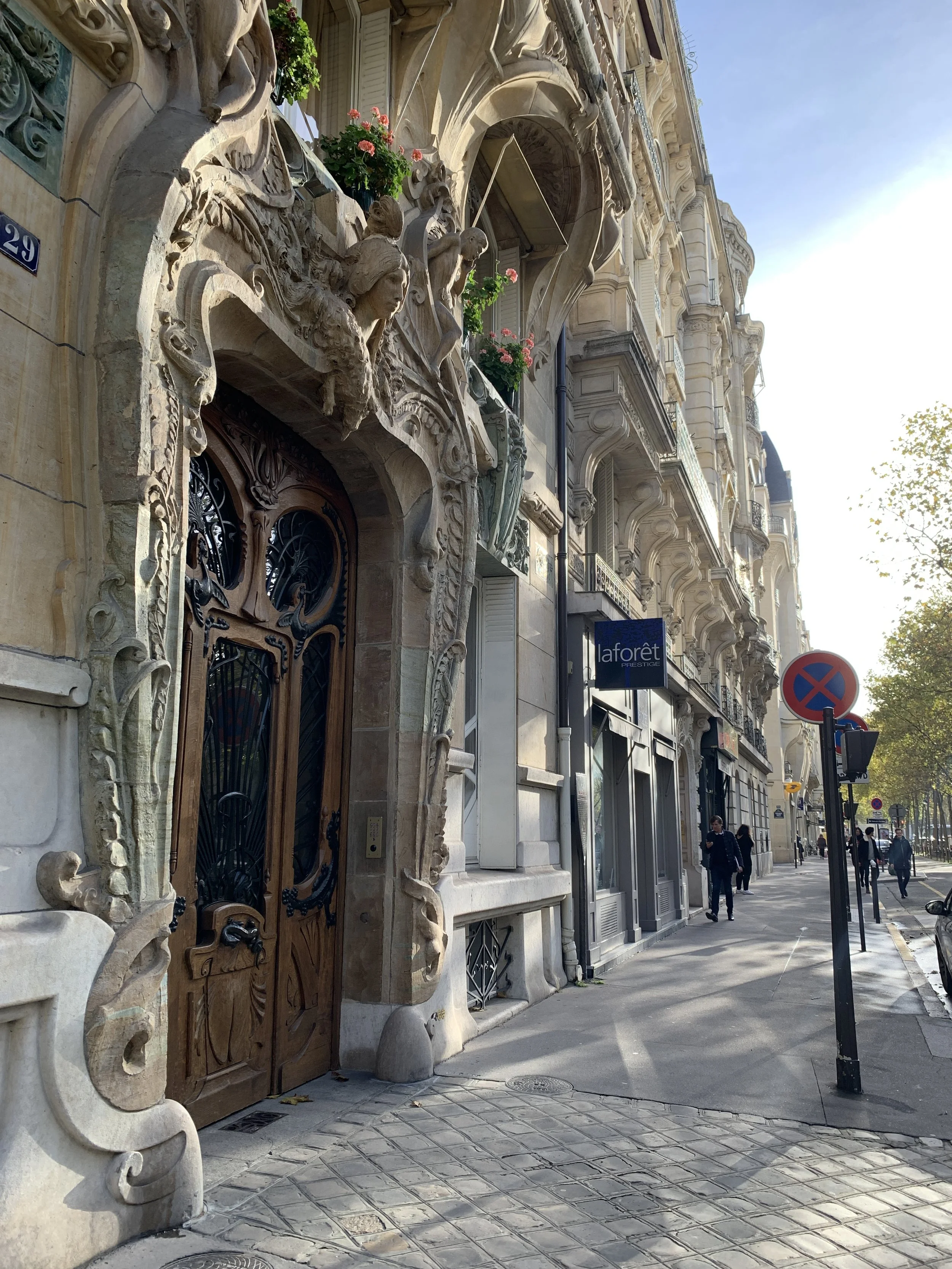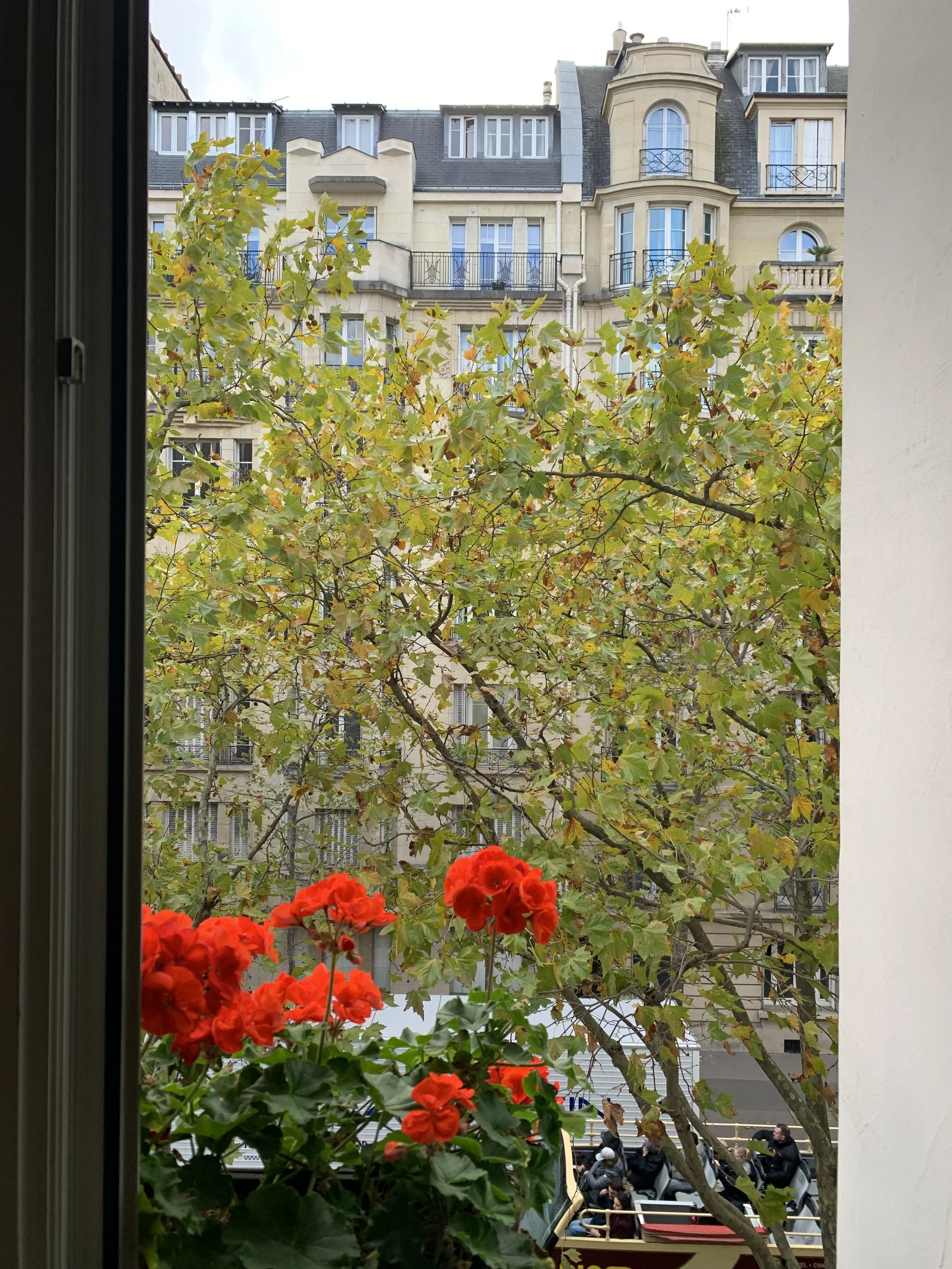 We both had overnight flights and arrived in Paris early in the morning. We took an Uber (easy to use) to Hotel La Bourdonnais near the Eiffel Tower. We were mesmerized by everything out the car window - the rooflines, the stadiums, the metro, and billboards to name a few. Since our room wasn’t quite ready when we arrived, we ventured around the neighborhood. We walked by French bakeries and laughed when we spotted an American grocery store with all the Thanksgiving fixins. It’s kind of ironic that our first meal in Paris was an American brunch, but everything tastes better in France. We then took our first of many Eiffel Tower photos and admired all of the architecture in the 7th arrondissement. You don’t need to research too much in Paris - every street you traverse has something special to notice. We came across the Lavirotte Building, one of the best surviving examples of Art Nouveau architecture. Then we checked into our hotel for a much needed nap before some dinner. I loved our hotel! While still small, our room was larger than anticipated and had updated amenities. It also had the older charm with double windows that opened to a flower box overlooking the street below. I thought it was reasonably priced for the location. We could walk to the Eiffel Tower, the Seine, and there was a metro stop nearby.